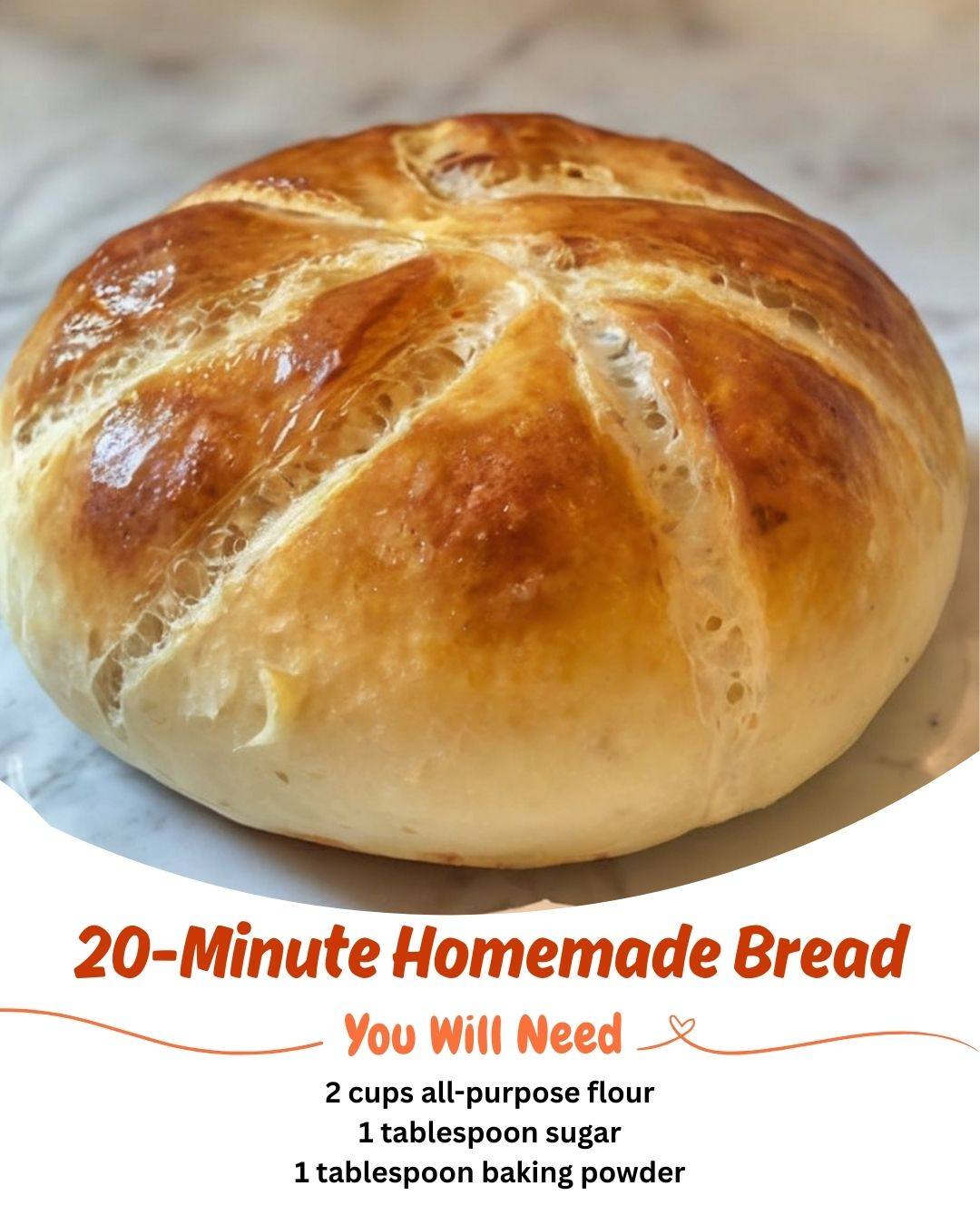 There is truly nothing quite like the comforting aroma of freshly baked bread filling your kitchen, and this 20-Minute Homemade Bread delivers that experience with incredible speed and simplicity. Perfect for busy days, last-minute dinners, or when a bread craving strikes, this recipe creates a warm, tender loaf without the need for yeast or long rising times.