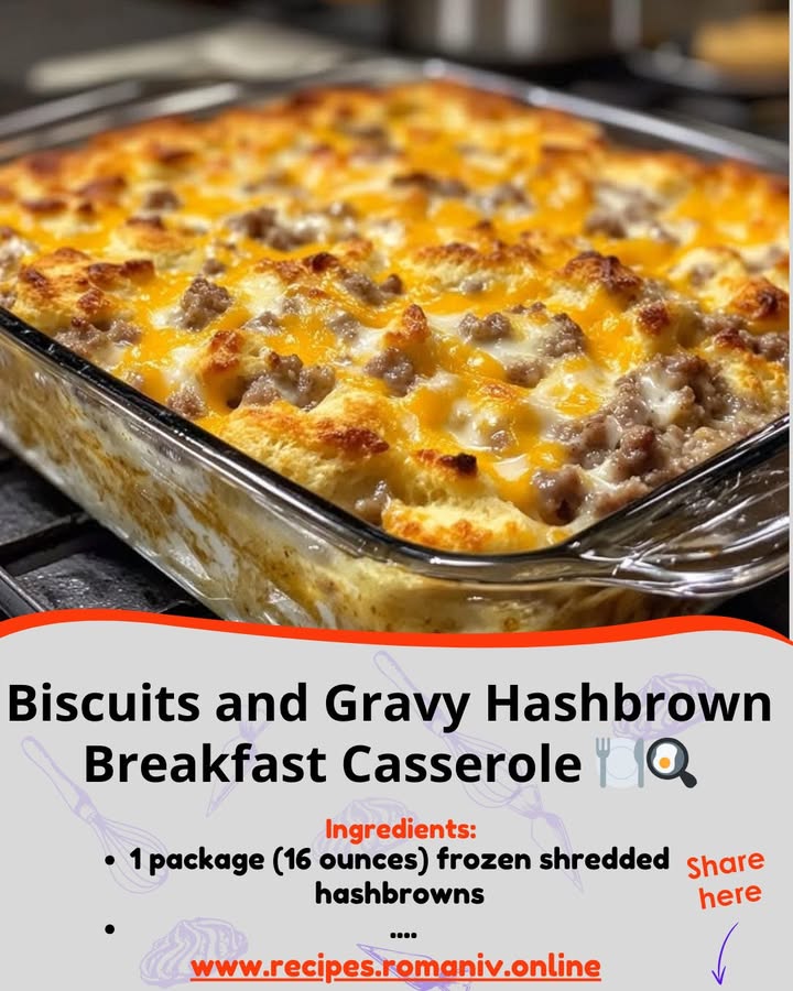 Biscuits and Gravy Hashbrown Breakfast Casserole