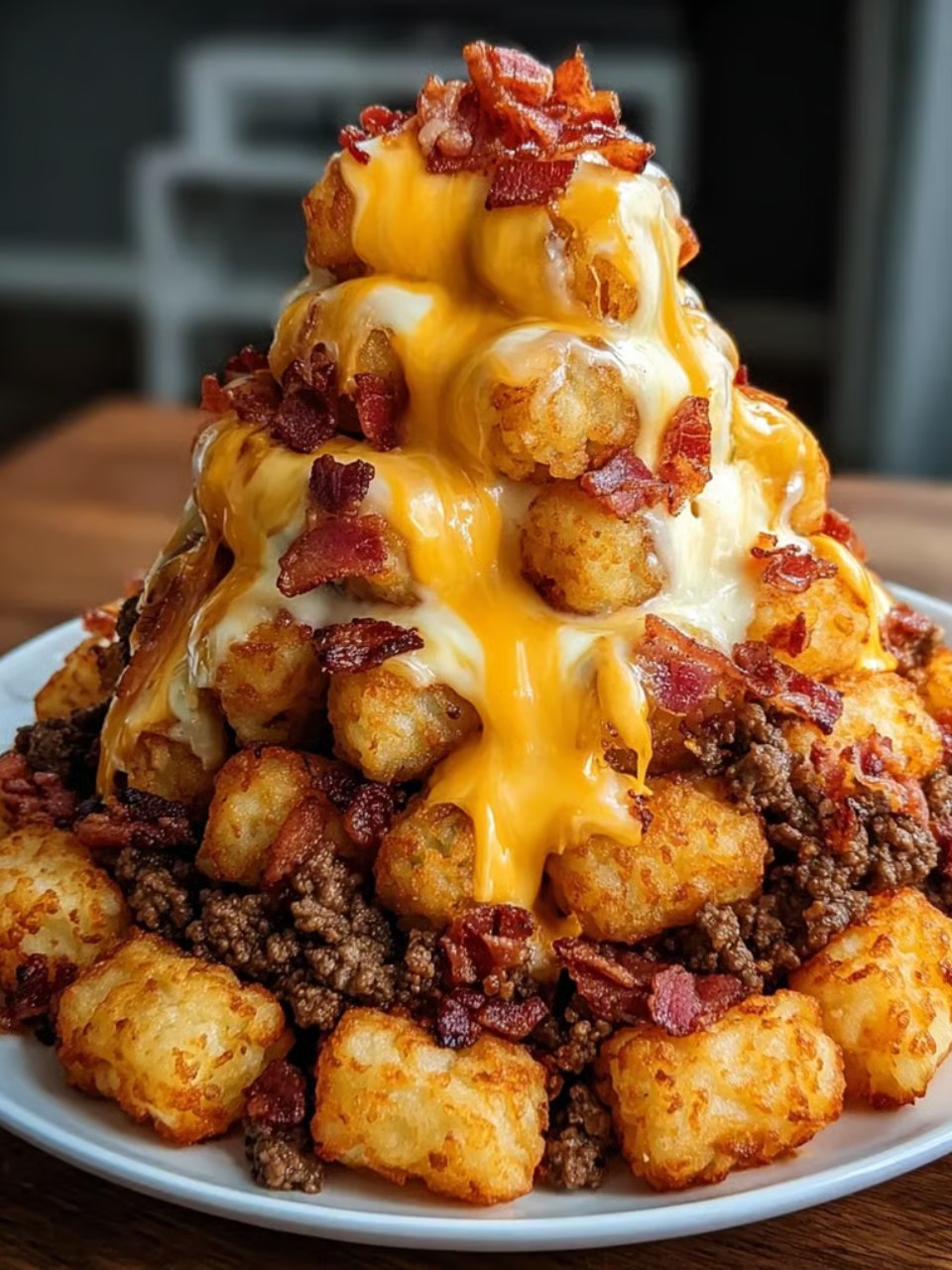 These Bacon Cheeseburger Stuffed Tater Tot Cones are the ultimate party appetizer — crispy golden tater tots shaped into cones and filled with juicy seasoned beef, smoky bacon, and melted cheese. Each bite delivers the perfect mix of crunch, gooeyness, and classic burger flavor, making them an instant hit at gatherings or game-day spreads.