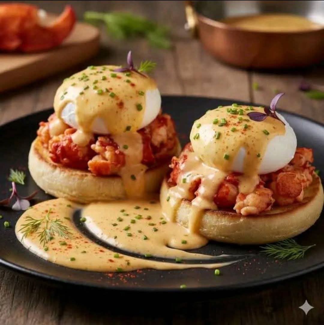 🦞 Bay Lobster Eggs Benedict with Cajun Hollandaise
