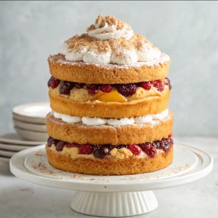 The Cherpumple is a towering dessert phenomenon β€” a full apple pie, cherry pie, and pumpkin pie each baked into their own cake layers, then stacked high and frosted like a classic layer cake. Outrageous? Absolutely. Delicious? Unforgettably. This show-stopping treat is perfect for holidays, parties, or anytime you want to serve a jaw-dropping slice of nostalgia and indulgence!