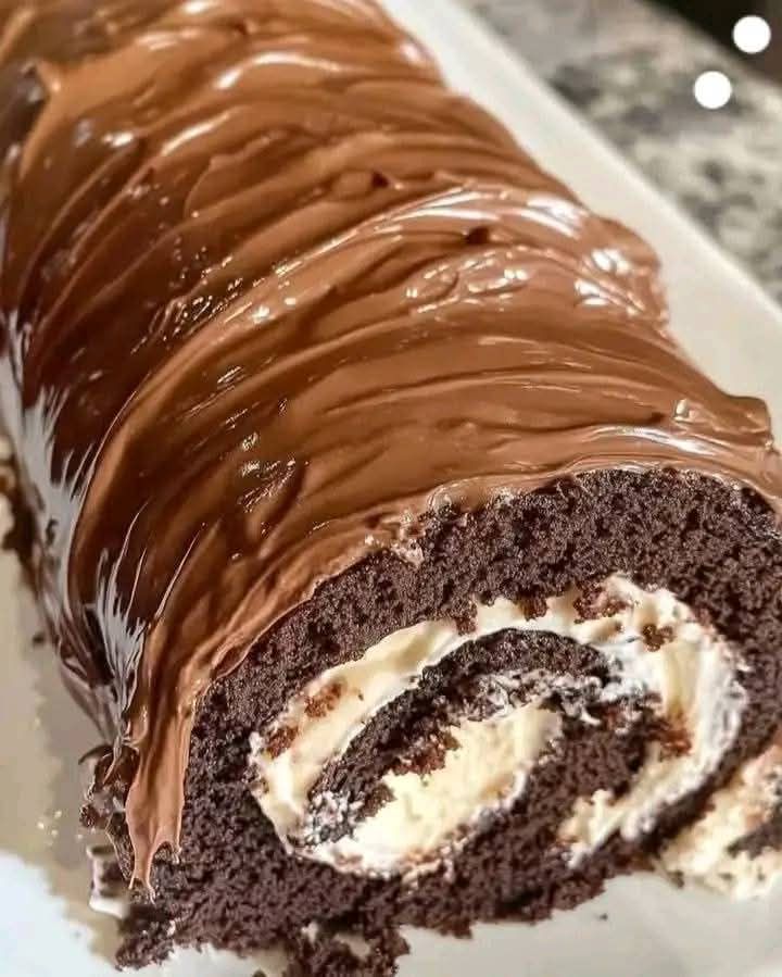 Chocolate Cake Roll — a soft, rich chocolate sponge cake rolled with fluffy whipped cream and topped with smooth chocolate ganache. This classic dessert looks stunning, tastes heavenly, and is easier to make than you’d think! Perfect for celebrations or a decadent treat any day. 🍫🎂