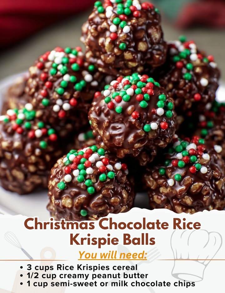 Celebrate the holidays with these Christmas Chocolate Rice Krispie Balls a delightful combination of creamy peanut butter, crunchy cereal, toasted pecans, and sweet coconut all coated in rich chocolate. These bite-sized festive treats are perfect for cookie exchanges, dessert platters, or as a make-ahead sweet to share with family and friends. They’re irresistibly crunchy, chocolatey, and full of holiday cheer in every bite!