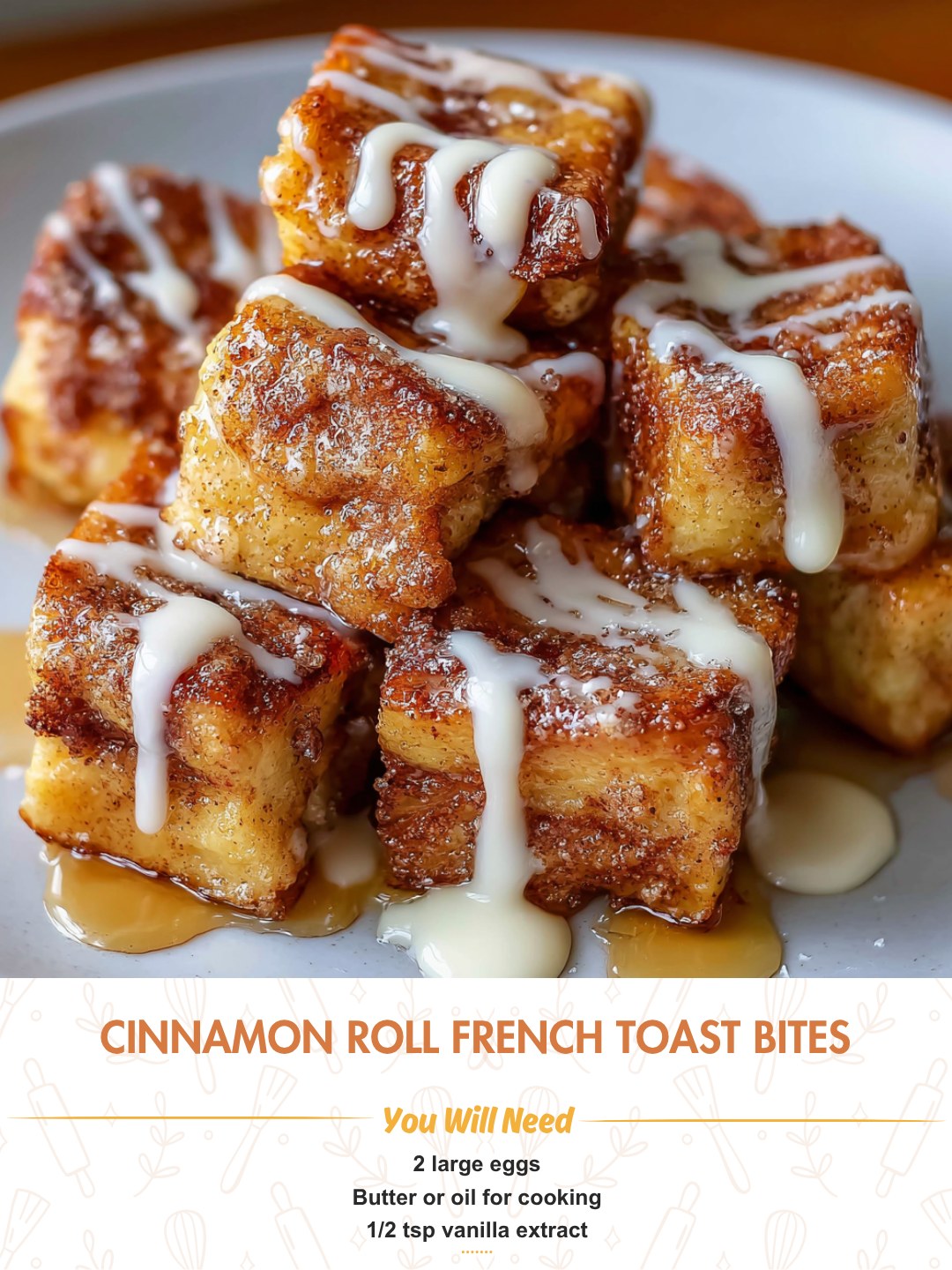 Cinnamon Roll French Toast Bites are a deliciously fun twist on classic French toast. These bite-sized morsels are made by soaking cinnamon roll pieces in a sweet egg mixture and cooking them to golden perfection. Whether you choose to cook them on the stove, bake them in the oven, or even try an air fryer, these cinnamon roll bites are a quick and tasty breakfast or brunch treat. Top them with maple syrup, fresh fruit, or a drizzle of cream cheese glaze for a special finishing touch!