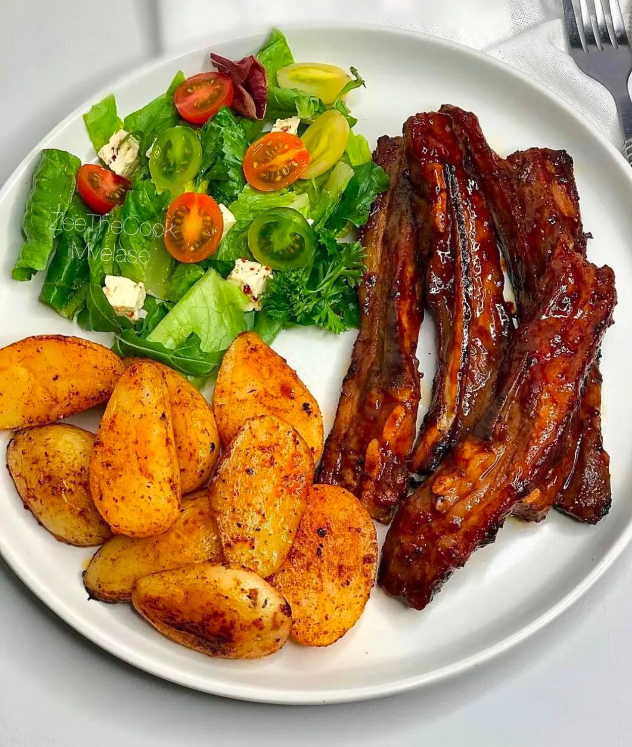 Sweet, sticky, and perfectly tender, these Cola-Braised Lamb Riblets are packed with flavour and finished in a rich, tangy glaze that combines tomato sauce, honey, and cola with a kick of lemon and herbs. Served alongside fluffy baked potatoes and a fresh salad, this meal balances indulgence and comfort with bright, herby notes. Ideal for a weekend dinner or family gathering, this dish is hearty, satisfying, and irresistibly moreish.