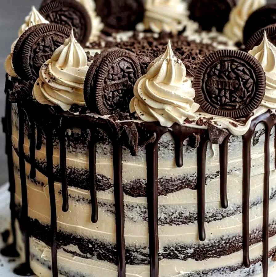 This Cookies and Cream Cake is a show-stopping dessert with layers of soft Oreo-infused cake, airy cookies & cream mousse, rich cream cheese frosting, and a glossy chocolate ganache drip. Each slice delivers a balance of textures and flavors—tender cake, creamy mousse, smooth frosting, and crunchy Oreo pieces—perfect for birthdays, celebrations, or an indulgent treat for Oreo lovers.