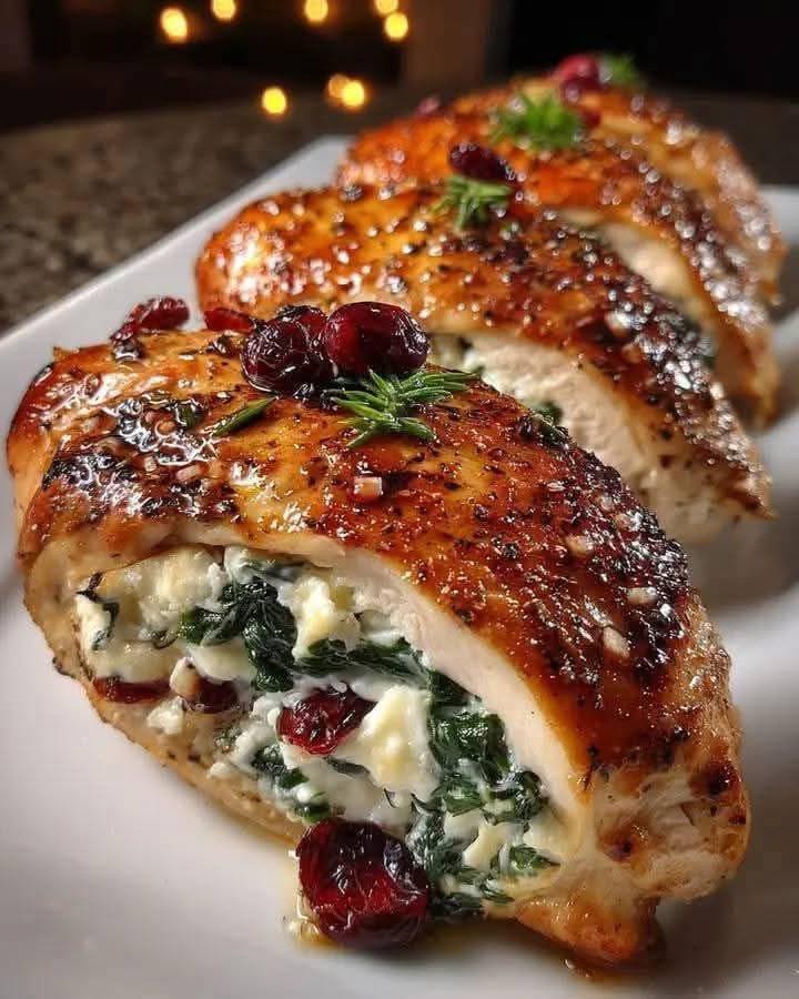 These Cranberry & Spinach Stuffed Chicken Breasts with Brie are a perfect combination of savory and sweet. The tender chicken is filled with a creamy mixture of brie cheese, fresh spinach, and dried cranberries, creating a deliciously indulgent dish. Whether you’re preparing a weeknight meal or a special dinner, this recipe will impress your guests with its vibrant flavors and elegant presentation!