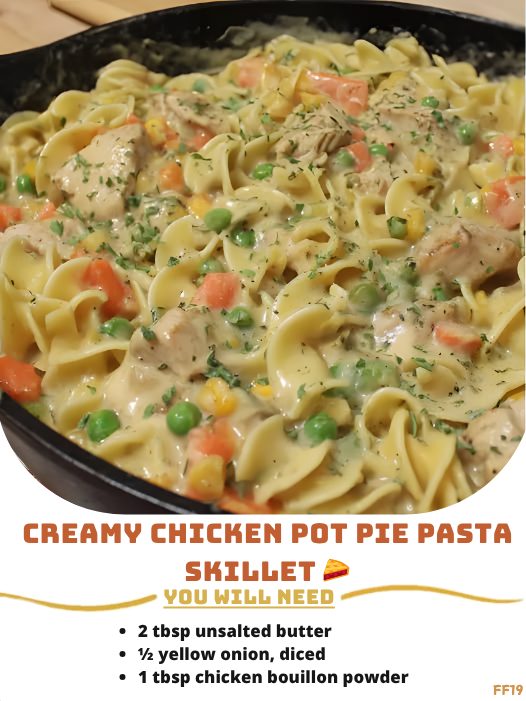 🥧 Creamy Chicken Pot Pie Pasta Skillet 🍗