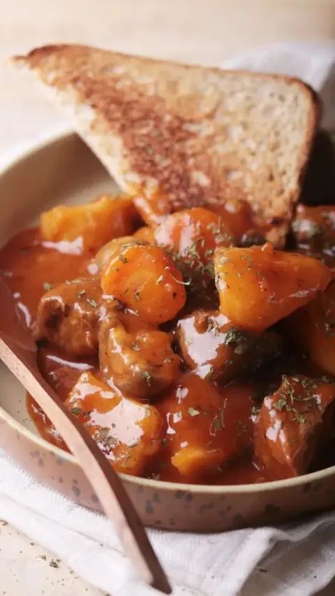 A rich, flavorful dish that’s sure to impress — a hearty beef stew with vegetables and a deep, savory sauce!