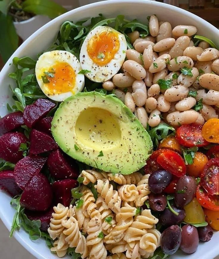 Dive into a symphony of flavors and textures with this vibrant This nourishing dish is bursting with fresh vegetables, hearty pasta, protein-packed eggs, and a zesty homemade dressing, making it a perfect meal for a light lunch or a satisfying dinner. It’s simple to prepare and truly a feast for the eyes and the palate.