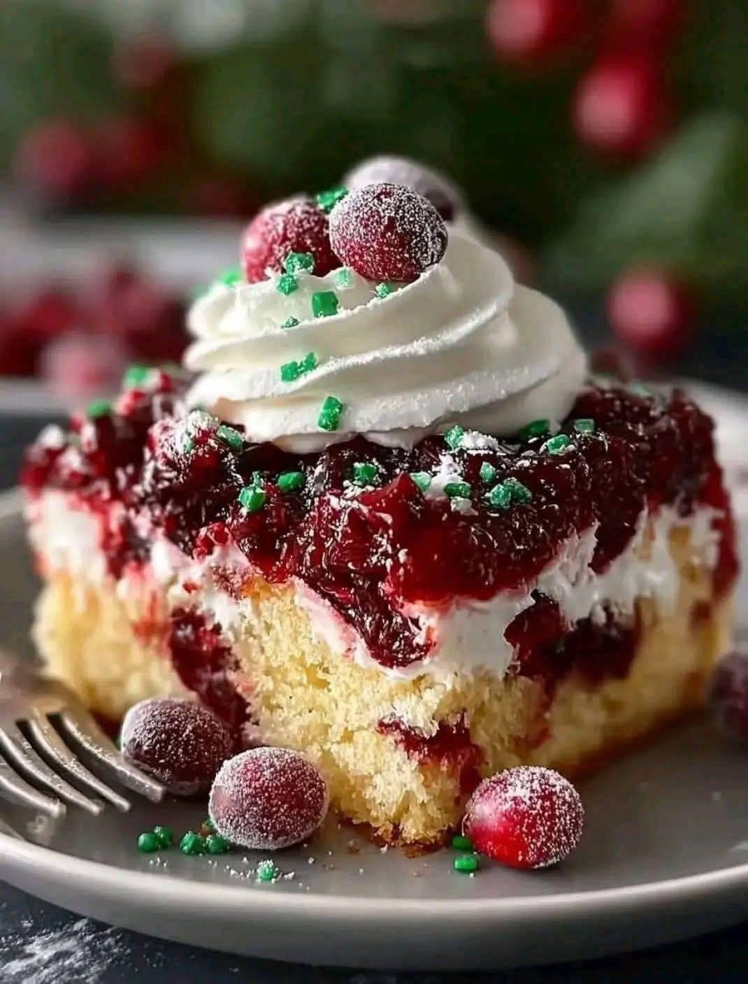 This Festive Cranberry Cake is a moist, flavorful dessert that’s perfect for the holiday season. With a sweet cranberry filling, a smooth cream cheese frosting, and a touch of orange zest, itâs a gorgeous addition to any Christmas dinner or holiday gathering. The cake is light, yet rich with cranberry goodness, and the fluffy topping adds just the right amount of sweetness. A truly festive treat to share with family and friends! đâ¨