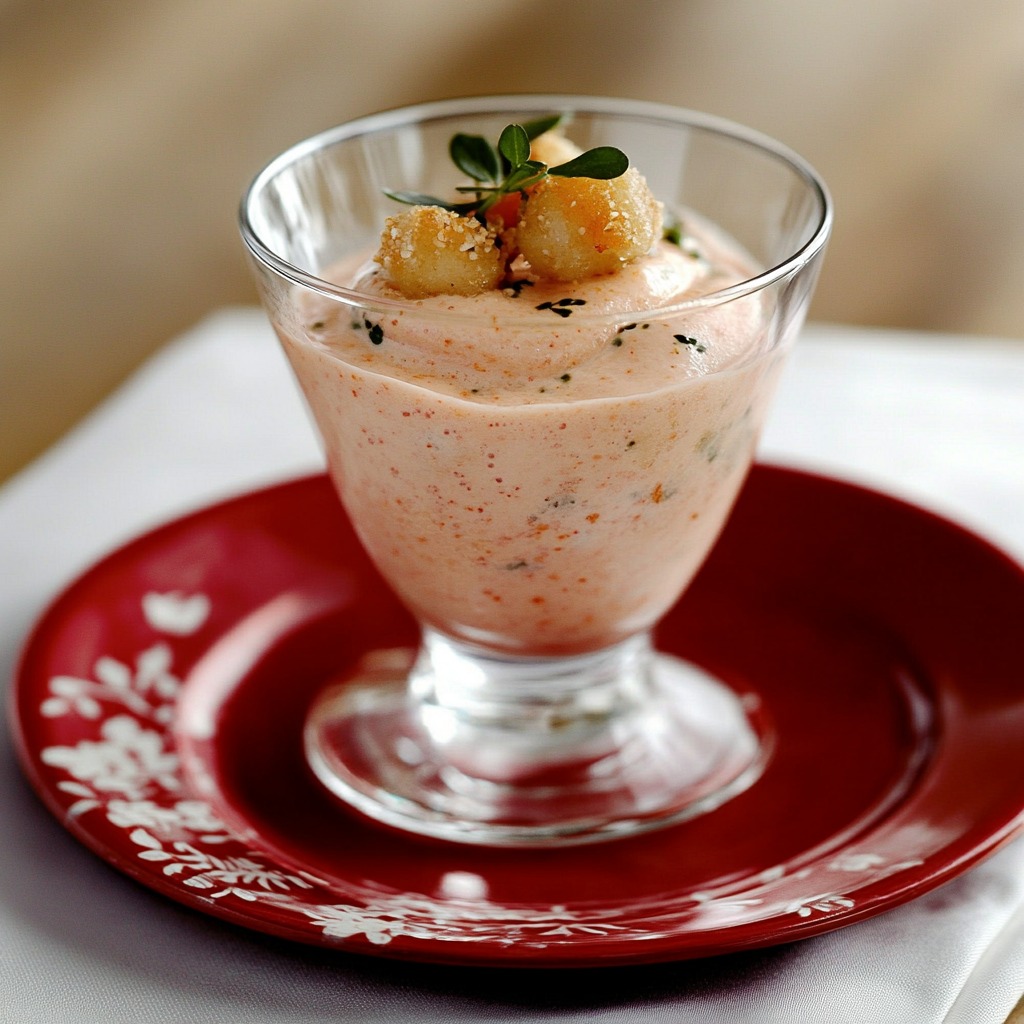 🍅✨ This elegant Foamy Pink Sauce in a Glass is a light, creamy mousse made from a tangy homemade pink sauce, gently folded with whipped cream and topped with crunchy croutons and fresh thyme. Served in verrines (small glass cups), it’s the perfect starter or amuse-bouche for a chic brunch or dinner party.