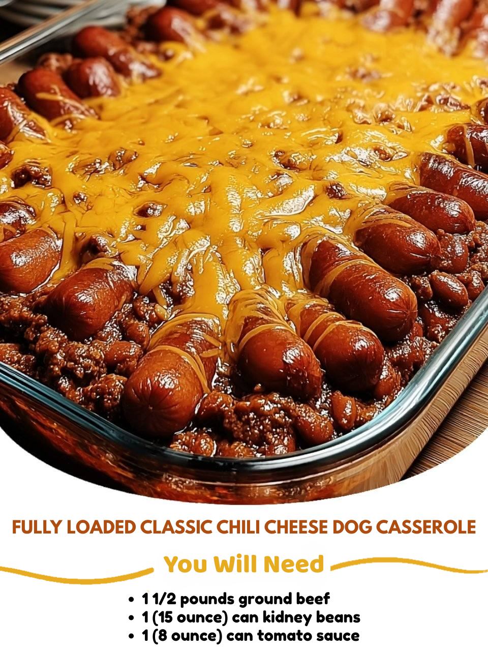 This Fully Loaded Classic Chili Cheese Dog Casserole is a comfort food dream — hearty chili layered with juicy hot dogs, melted cheddar, and a bubbly baked topping that captures all the flavors of a classic chili cheese dog in casserole form. It’s rich, satisfying, and perfect for feeding a crowd on game day or any cozy night in.