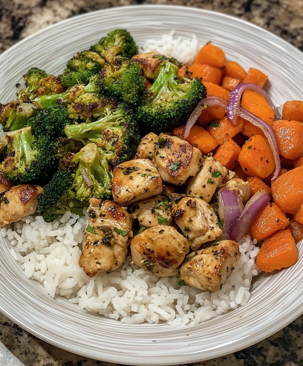 This simple, nutritious stir-fry bowl features tender chicken, caramelized onions, roasted carrots, and vibrant broccoli sautéed in a savory garlic herb sauce. Paired with warm, fluffy rice, it’s a comforting and balanced weeknight meal that’s as delicious as it is easy to make!