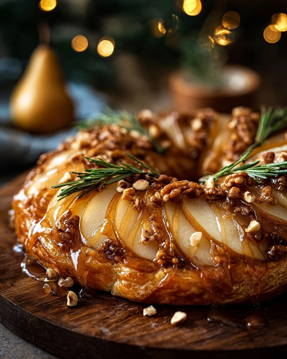 🍐🎄 Make your holiday table sparkle with this flaky, golden puff pastry wreath filled with bold, festive flavors! A warm crown of caramelized pears, creamy blue cheese, and toasted hazelnuts — it’s an elegant appetizer or savory centerpiece that brings both visual wow-factor and irresistible taste. Ideal for gatherings, this recipe balances sweet, savory, crisp, and creamy in every bite.