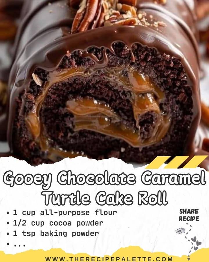 This indulgent cake roll is the ultimate dessert for chocolate and caramel lovers! Rich chocolate sponge cake is rolled around a gooey caramel and pecan filling, then finished with a silky chocolate ganache and extra pecan garnish. Perfect for special occasions or any time you crave something decadent!