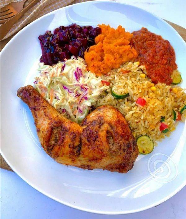Enjoy a colorful and hearty plate that brings together protein-packed grilled chicken, savory fried rice bursting with vegetables, and sweet, caramelized roasted sweet potatoes. This combination offers a satisfying mix of textures and nutrients—all made with simple ingredients that come together beautifully on one plate.