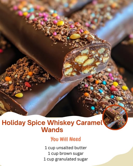 These Holiday Spice Whiskey Caramel Wands combine rich butter, warm winter spices, and a touch of whiskey for depth, all bound together with graham crumbs to form no-bake cookie “wands.” Dipped in chocolate and sprinkled for festive flair, they offer a soft, caramel-like texture with comforting holiday aromas.