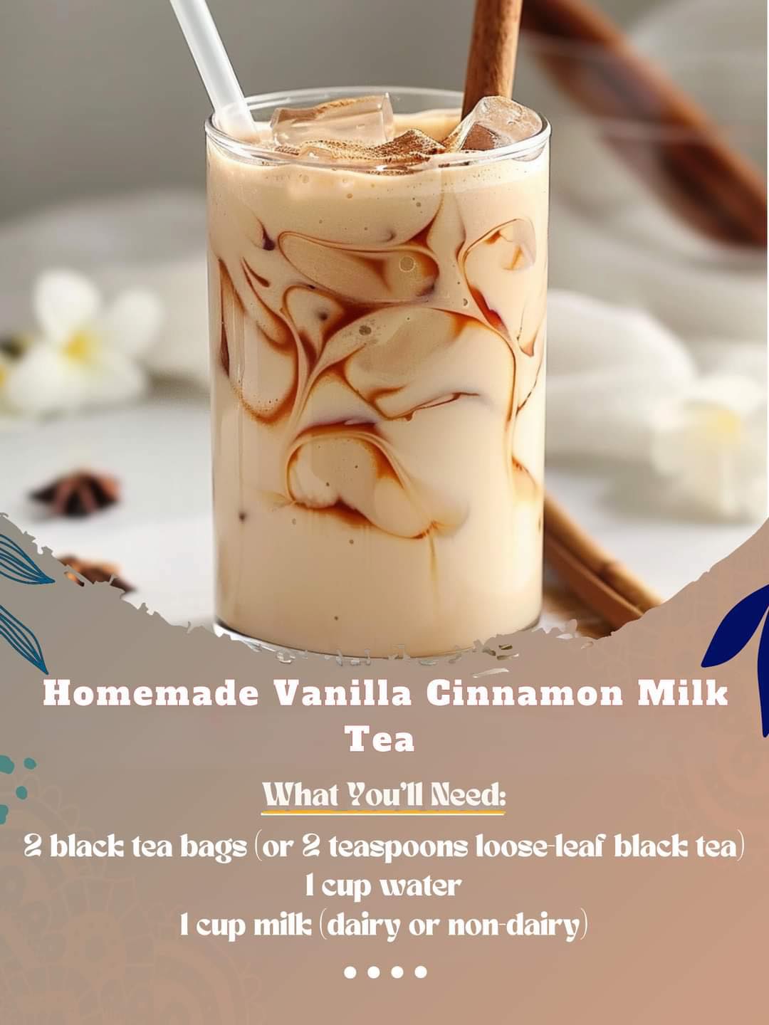 Homemade Vanilla Cinnamon Milk Tea is a warm, cozy drink that blends the comforting depth of black tea with creamy milk, aromatic vanilla, and a hint of spice from ground cinnamon. It’s an easy-to-make, soothing beverage perfect for chilly evenings or a calming mid-day break. Lightly sweetened and customizable with your choice of milk and sweetener, it’s a hug in a mug with every sip.
