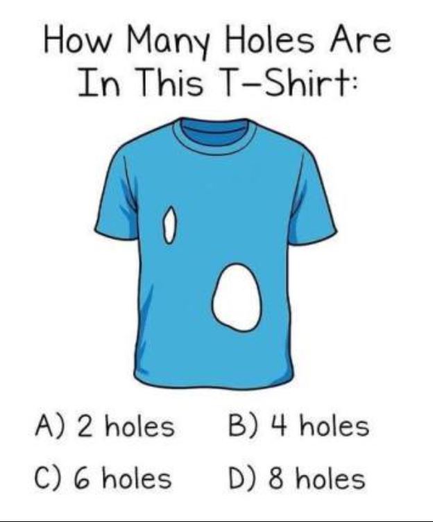 When most people think of holes in a T-shirt, they immediately count the obvious ones: