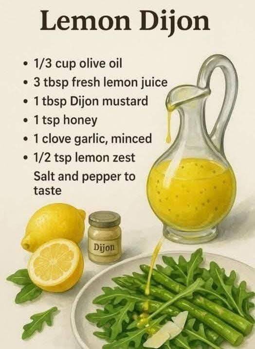 Lemon Dijon is a bright, tangy, and flavorful dressing made with fresh lemon juice, Dijon mustard, olive oil, and simple seasonings. It’s versatile and can be used as a salad dressing, marinade for chicken/fish, or even drizzled over roasted vegetables. The combination of zesty lemon and sharp Dijon mustard creates a refreshing balance of acidity and creaminess without being heavy.