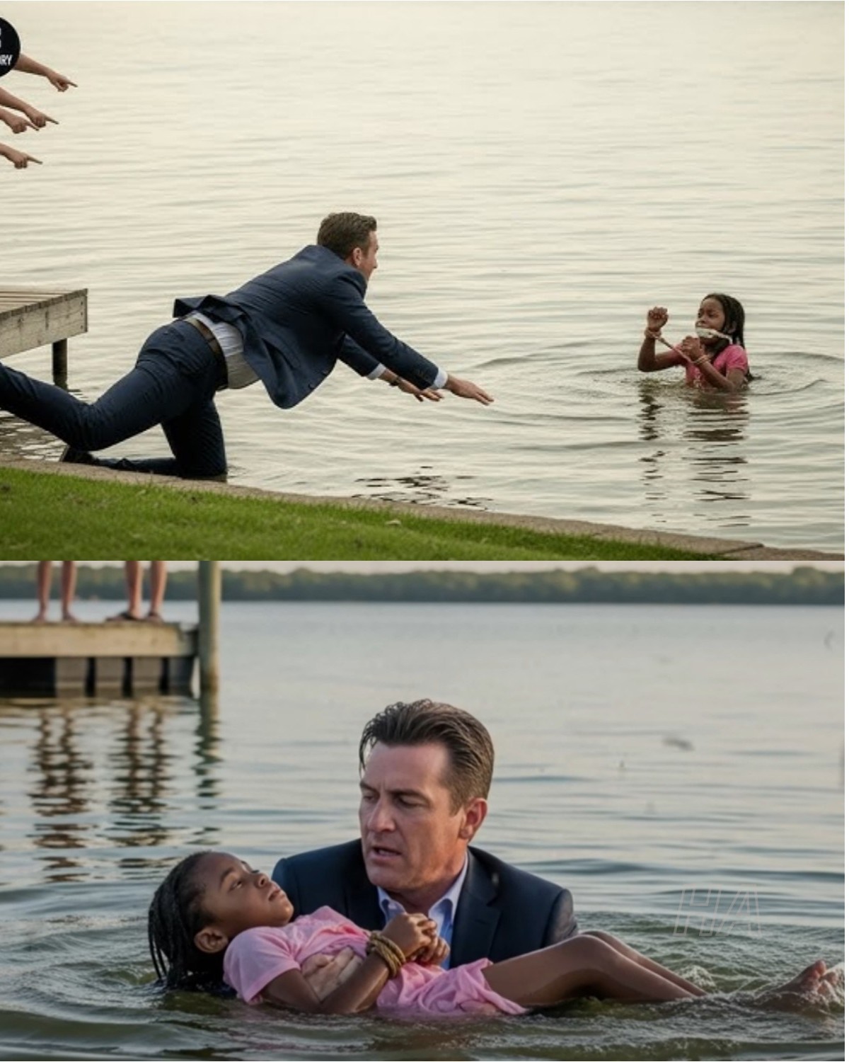 Red and blue light spilled across the water as paramedics rushed down the slope, med-kits in hand. David, soaked to the bone, was still kneeling beside the girl, rubbing her tiny arms to keep her warm. Her breathing had steadied, shallow but real.
