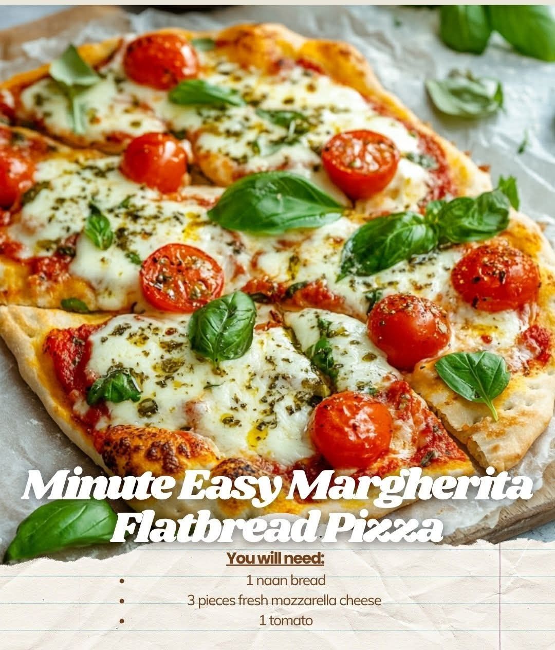 This quick Margherita flatbread pizza captures classic Italian flavors in a fast, convenient format. Using naan as the base creates a crisp-yet-chewy crust, while fresh mozzarella, juicy tomato slices, and fragrant basil provide the essential Margherita profile. Each ingredient contributes to a balanced bite with minimal prep and maximum flavor.