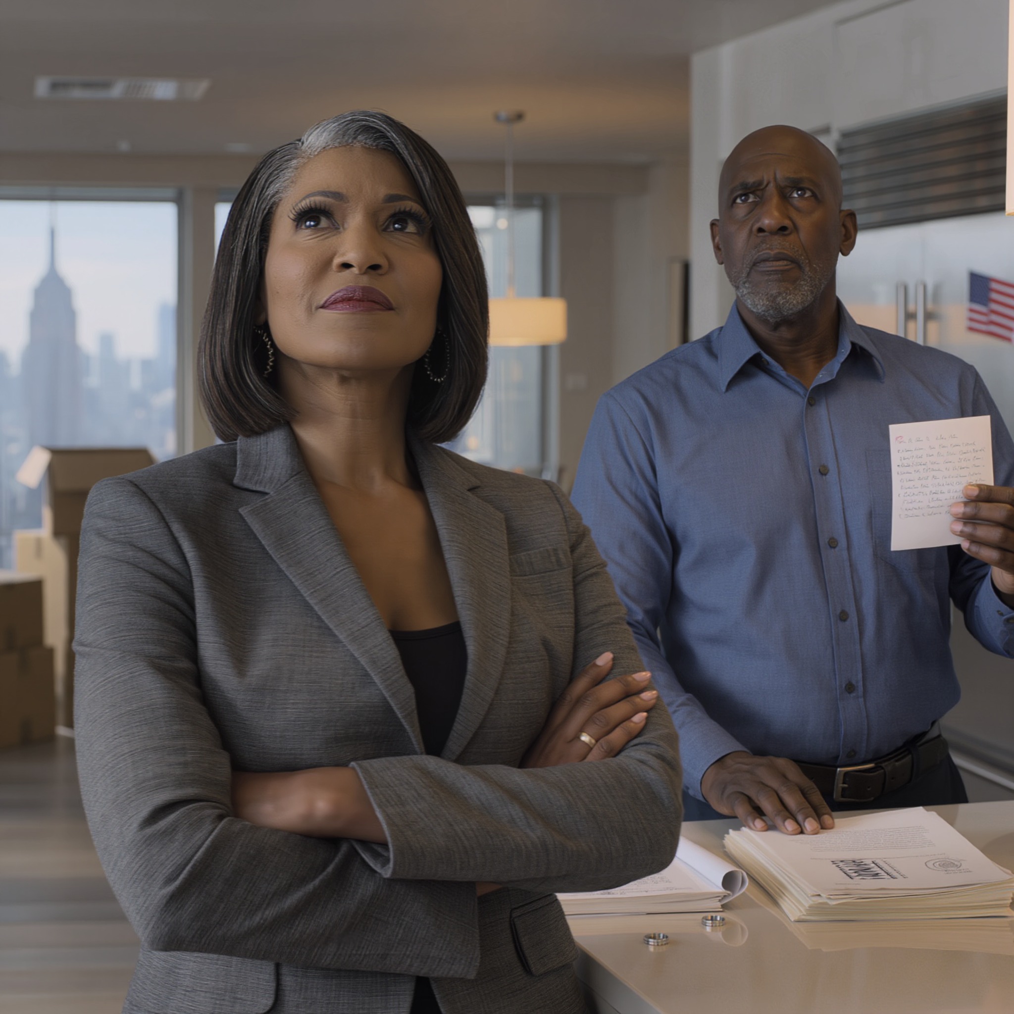 She got up, showered, and stood in front of her closet for a long time, choosing an outfit. She settled on a dark blue pantsuit—severe but feminine—a white blouse, small silver earrings. She styled her hair into a low bun, neat, professional. The gray streaks barely showed among the rest of her hair.