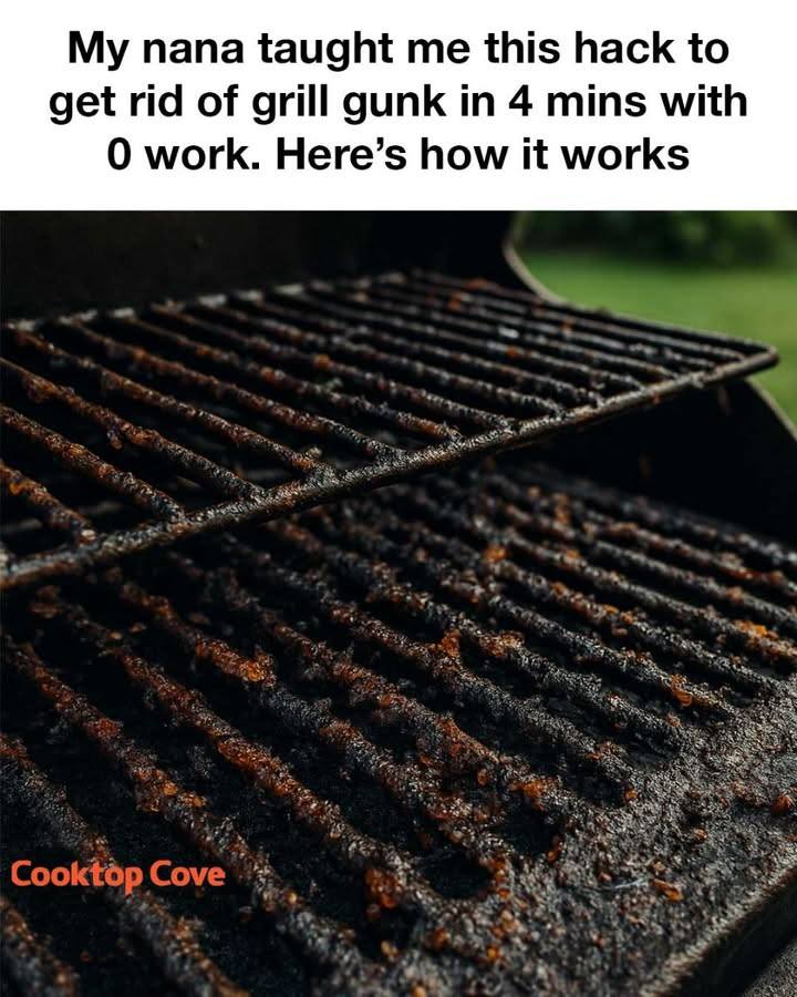 My nana taught me this hack to get rid of grill gunk in 4 mins with 0 work. Here’s how it works