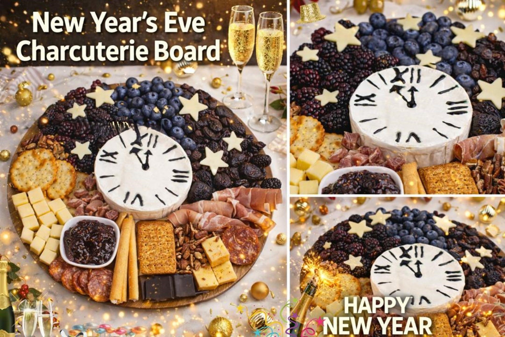 New Year’s Eve Charcuterie Board is a fun charcuterie appetizer board full of fresh fruit nuts, meat and cheese with a fun clock shaped brie in the center. This is the perfect way to celebrate as you count down the clock to a new year.
