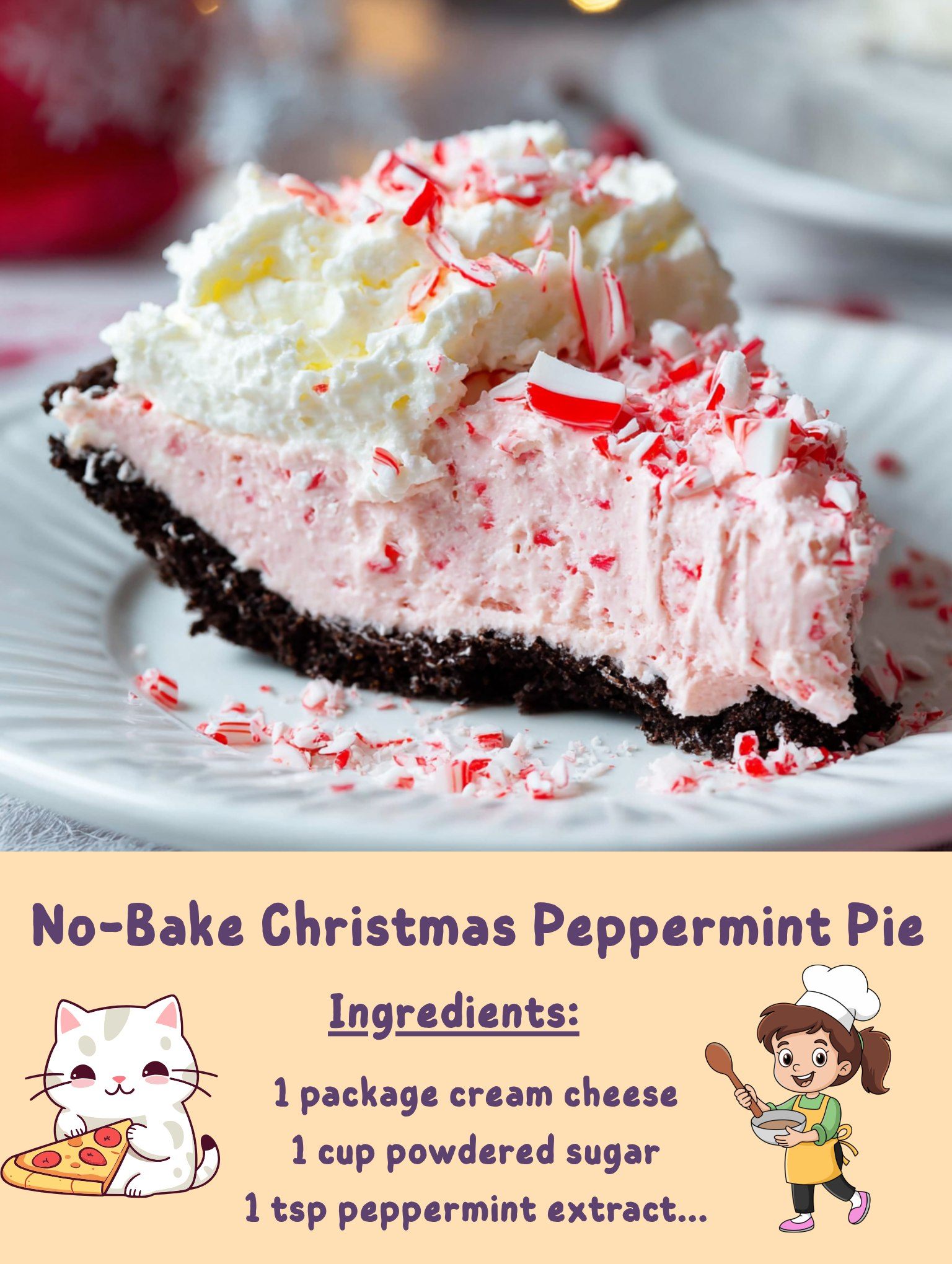 Cool, creamy, and full of peppermint cheer, this No-Bake Christmas Peppermint Pie is the ultimate easy holiday dessert! With a chocolate cookie crust, fluffy peppermint filling, and a festive sprinkle of crushed candy canes on top, it’s the perfect blend of simplicity and celebration. No oven needed—just chill, slice, and serve!