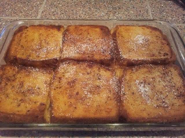 As it bakes, the butter and brown sugar melt together at the bottom of the pan, creating a sweet sauce that seeps into the bread. The result is a casserole-style French toast that’s golden on top, tender in the center, and indulgent in every bite. A dusting of powdered sugar and a drizzle of warm maple syrup make it absolutely irresistible.