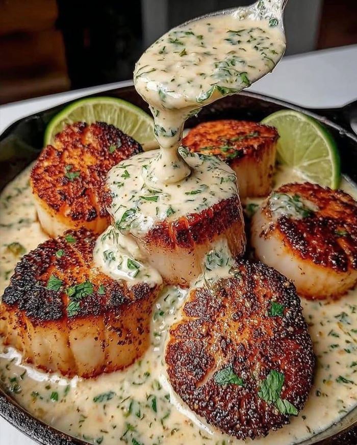 Sizzling Scallops with Zesty Lime Cilantro Sauce
