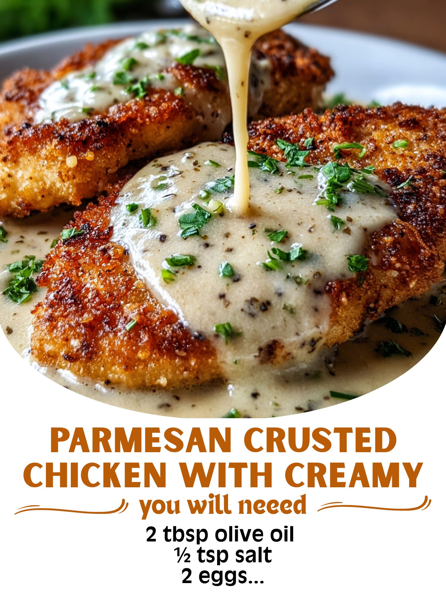 This Parmesan Crusted Chicken with Creamy Garlic Sauce is everything you want in a comfort meal—crispy golden chicken, tender and juicy inside, served with a rich and garlicky cream sauce that’s packed with flavor. It’s easy enough for weeknights and fancy enough for guests. Serve it over mashed potatoes, pasta, or rice for a complete, crave-worthy dinner!
