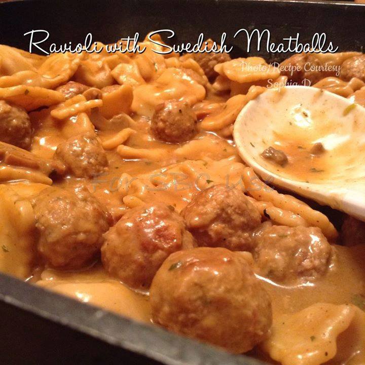 Ravioli with Swedish Meatballs in Creamy Gravy