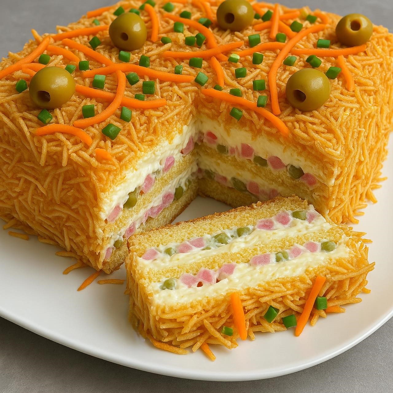 🤤 This Savory Blender Cake is quick, creamy, and incredibly versatile — a beloved Brazilian-style “bolo salgado” perfect for lunches, picnics, or potlucks. With a light batter blended in minutes and a customizable filling like shredded chicken or ham, it’s a one-pan wonder that delivers on both flavor and convenience!