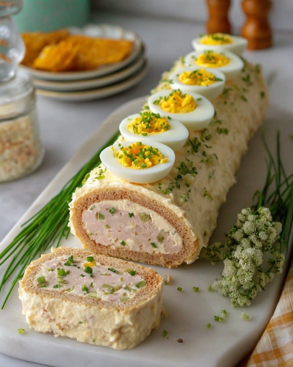 🎄 Savory Yule Log with Mimosa Eggs & Tuna 🥚🐟