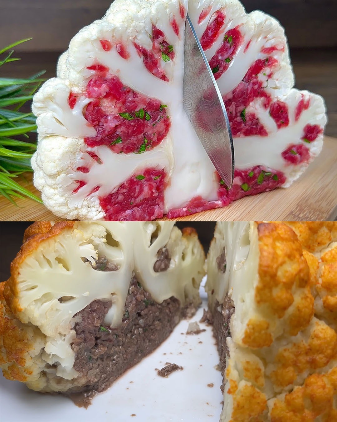 Your visitors will be blown away by the imaginative meal you prepare for them, which takes the unassuming cauliflower and turns it into a magnificent centerpiece. Baked to perfection, this dish for stuffed cauliflower is loaded with tasty minced beef and spices that provide a lot of different flavors. In addition to being a novel and delectable way to consume cauliflower, this method guarantees that the discussion at the dinner table will begin with praises.