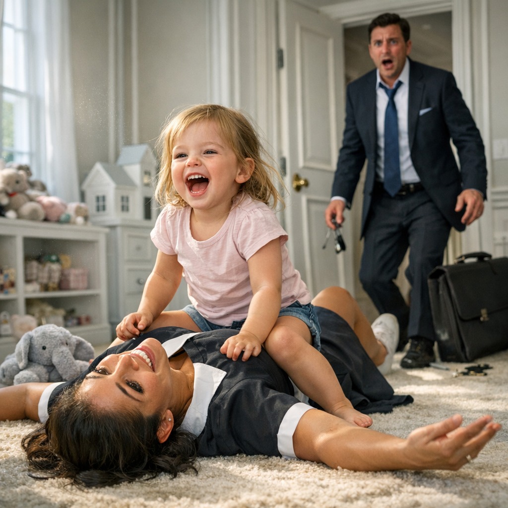 The maid, this woman named Felicia, who’d only been there 3 weeks, was lying on the floor, and Jasmine was on top of her, giggling, actually giggling, her little hands reaching out, her legs moving, her face alive in a way he thought was gone forever. Jake couldn’t breathe. He stood there frozen watching his daughter, his silent, broken, unreachable daughter, laughing like she used to, before that night, before the accident, before everything died.