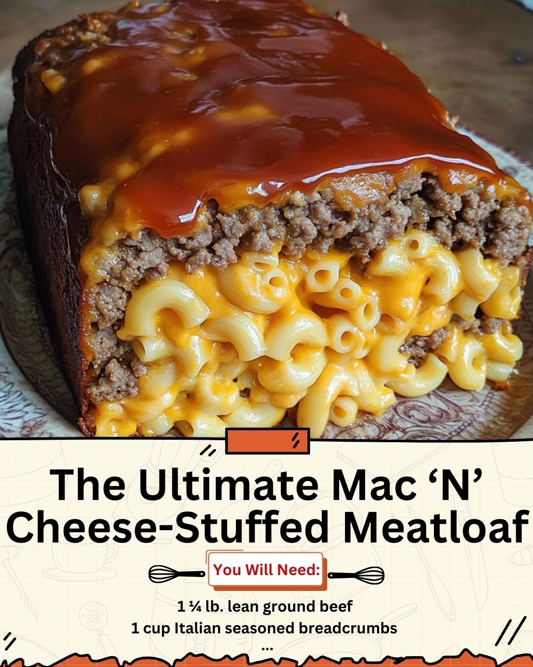 This Mac ‘N’ Cheese-Stuffed Meatloaf is the ultimate comfort food mashup. Juicy, seasoned ground beef surrounds a cheesy, creamy core of macaroni and cheese, all topped with a sweet and tangy glaze. Every slice reveals a molten surprise of mac and cheese nestled inside a tender meatloaf—guaranteed to impress at dinner time!