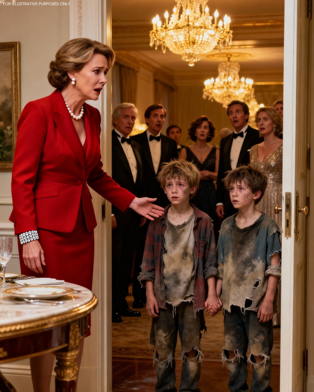 At the center table, renowned art dealer Victoria Leclerc looked up from her wine. The diamond on her wrist glimmered beneath the chandelier’s light as the room turned toward her. She didn’t notice the stares. Her gaze locked on the taller boy, and suddenly, she couldn’t breathe.